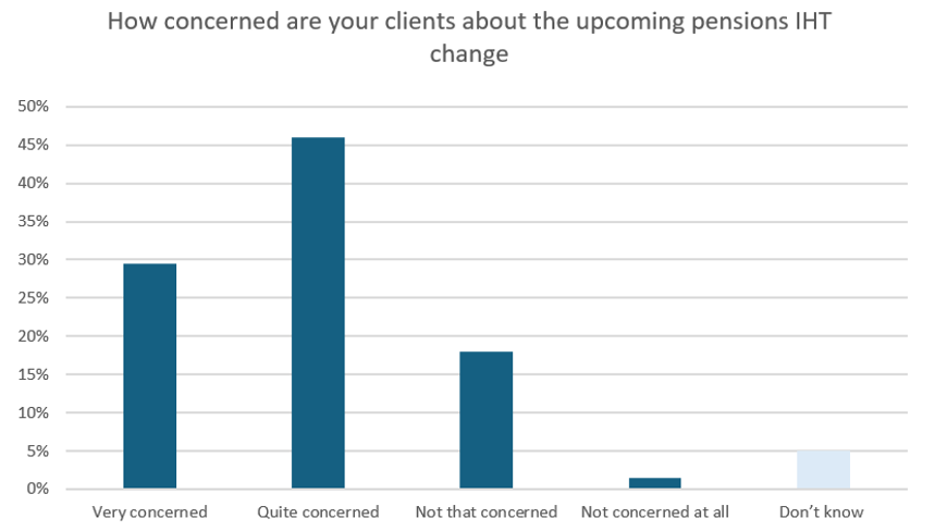 Advisers also have an important role in reassuring clients and explaining the new regulations. 76% say their clients are concerned about the upcoming IHT change, and 30% report that these concerns are very high.